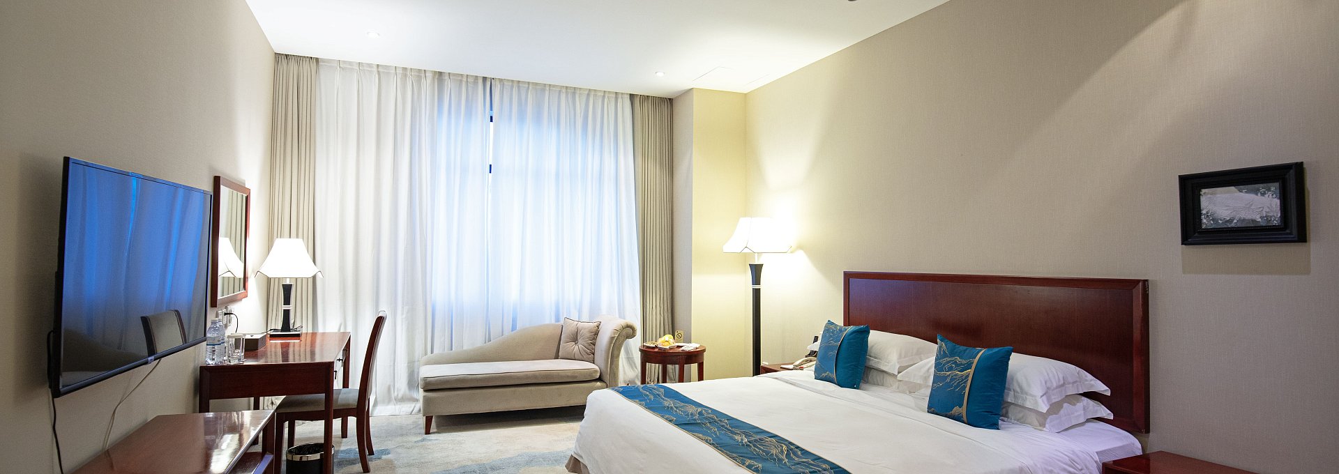 Просторный номер площадью 30 квадратных метров, сочетающий в себе функциональность и элегантность, создавая идеальные условия как для отдыха, так и для работы. В номере представлена кровать king-size с гипоаллергенным постельным бельем, зона отдыха с мягкой мебелью, уголок с письменным столом, высокоскоростным Wi-Fi и комфортным освещением для работы.